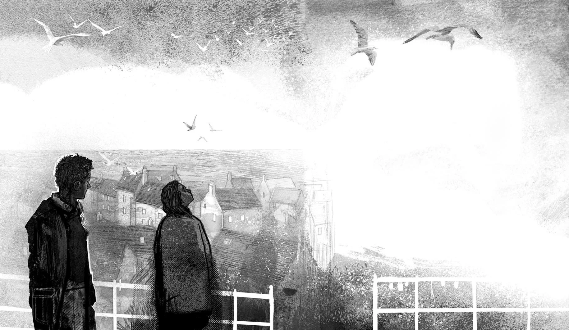 Since childhood I’ve always loved black and white pen work more than any other form of illustration, and when I embarked upon the portfolio of images for We Were Wolves I consciously attempted to pay homage to the many illustrators who inspired me in my career, from Charles Keeping to Maurice Sendak and Tove Jansson, and including comic illustrators I adored in my youth, such as Brian Bolland, Mike McMahon, Carlos Esquerra and Dave Gibbons.